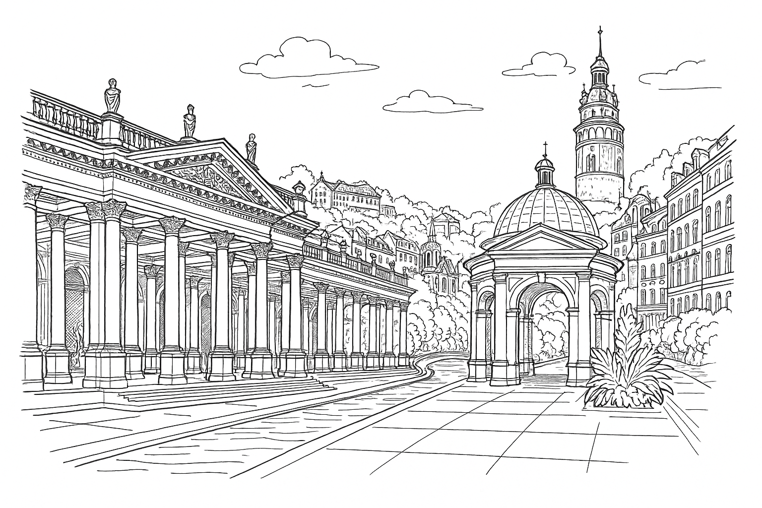 Lázeňské město s kolonádami, vřídly a tradičními oplatkami.